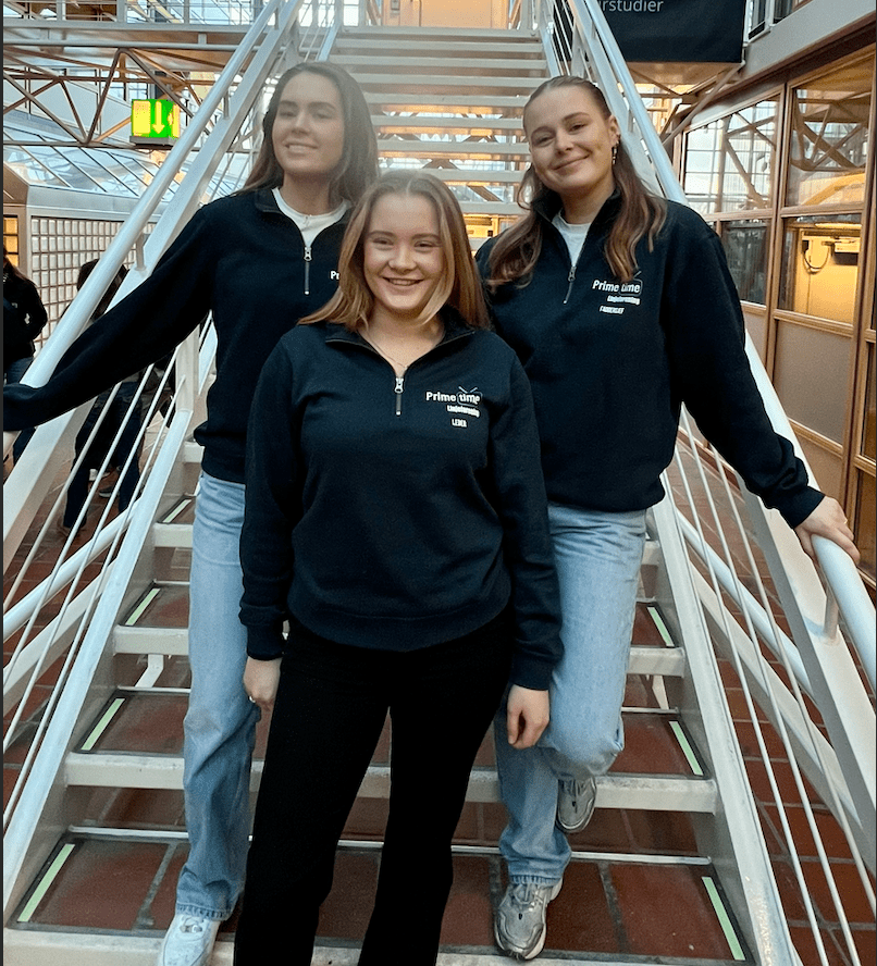 Leder 2023/2024 Ingrid Moi (midten), Faddersjefer Hedda Schultz (venstre) og Thea Hogsnes (høyre)